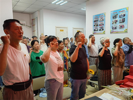 学习身边榜样,凝聚奋进力量。6月30日上午,第四社区党委组织辖区党员开展“感念党恩情,永远跟党走”“七一”主题党日活动。活动在党员们齐唱《没有共产党就没有新中国》的嘹亮歌声中拉开序幕,社区党委书记夏峰波带领党员们重温了入党誓词,铿锵的语调庄严的宣誓,无不展示新时代基层党员的精神面貌。随后,由预备党员领学安徽省优秀共产党员齐永荣、吴志堂、宋文武、孟刚同志先进事迹,学先进学典型激励广大党员见贤思齐担当作为。