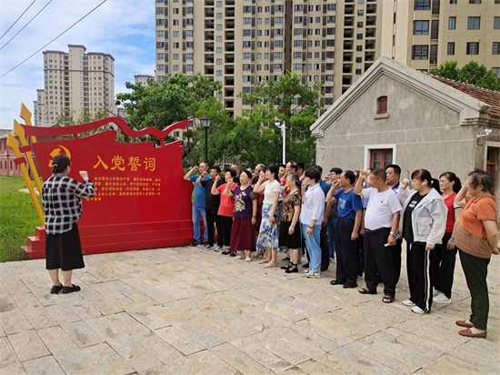温入党誓言 铭使命责任。“我志愿加入中国共产党,拥护党的纲领,遵守党的章程,履行党员义务……”参观结束后全体党员整齐列队站在党旗下,高举右手,用庄严洪亮的声音进行宣誓。铿锵恢宏的誓词,强烈震撼着在场的每一位党员,一字一句,神圣而豪迈,铮铮誓言,充分体现了党员同志们对中国共产党的无限忠诚和热爱。