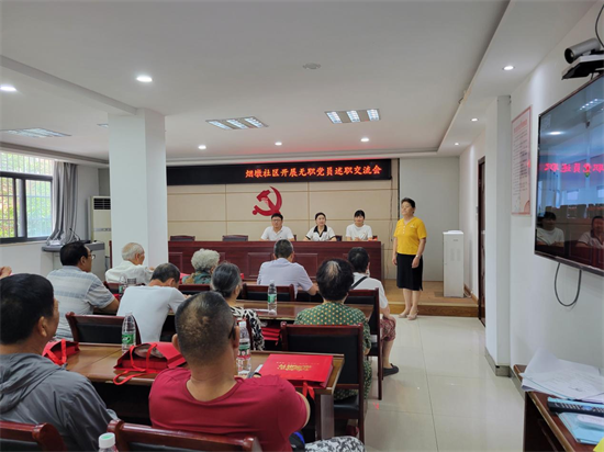 党员“晒”答卷 榜样零距离。身边有榜样,堡垒更坚强,为夯实基层党组织战斗堡垒,有效发挥无职党员先锋模范作用,增强无职党员的责任感和荣誉感,社区召开党员大会,开展上半年无职党员履职情况述职活动,述职内容为党员参与“活力工程”认领的岗位和履职的情况,通过党员述职引导更多的党员向他们学习,从而激活更多的党员“红细胞”,推动“无位”变“有为”,架起了党员和群众的“连心桥”。