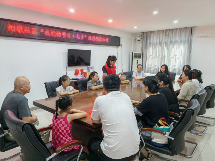 活动伊始,社区工作人员向在场居民简要介绍了七夕节的起源、“牛郎织女”的传说及节日习俗,让大家对传统节日有了更深入的认知。随后,经典诵读环节正式展开。参与者们依次登台,带来精心准备的作品:大家声情并茂地朗诵《七夕》《乞巧》等经典古诗,还有社区志愿者分享七夕相关的民间故事,带领大家感受古人的浪漫情怀。每一段诵读都赢得了现场观众的阵阵掌声,大家在诗词的熏陶中,体会着传统节日的文化魅力。